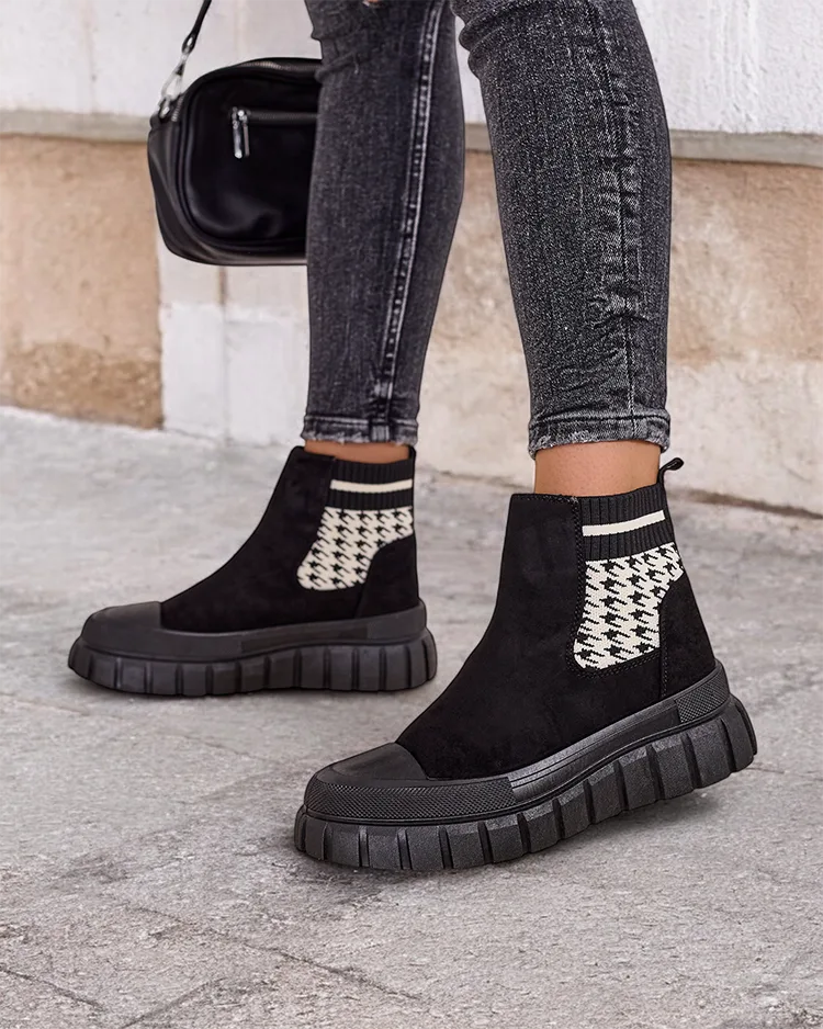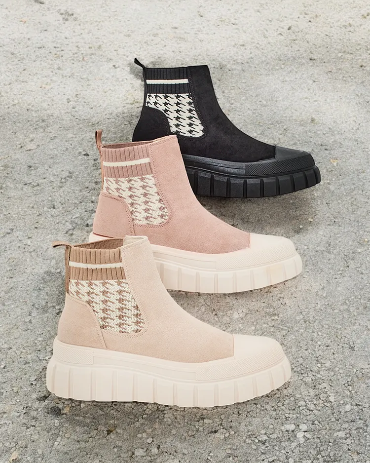 - Bottines de plateforme pour femmes, en simili cuir suédé écologique. Bottines à enfiler, intérieur en tissu confortable. Parfaites pour l'automne!