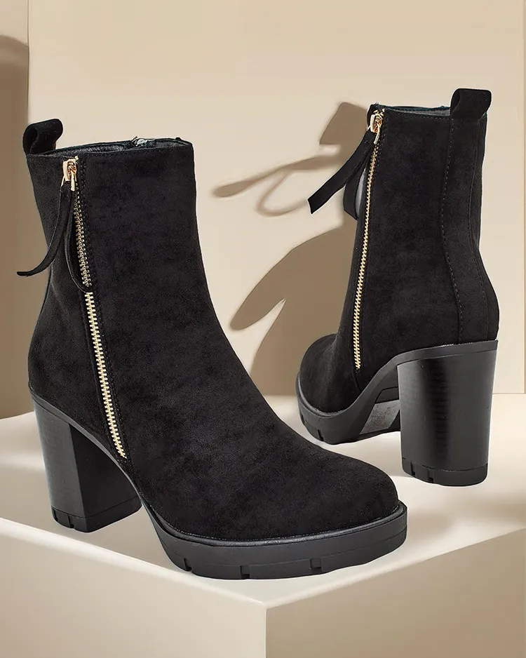 - Les bottines de cheville pour femmes élégantes sont la solution parfaite pour les journées plus fraîches. La tige est fermée par une fermeture éclair, et à l'intérieur, il y a une doublure en fourrure. Modèle sur un poteau, avec un bout rond. Un excellent