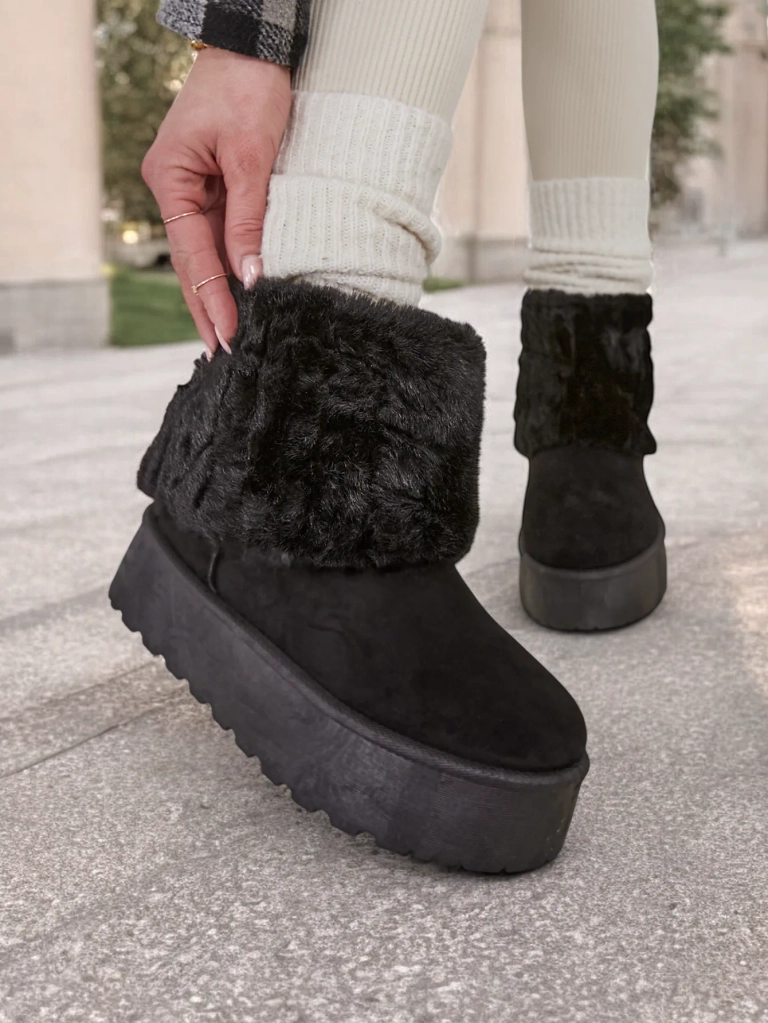 - Bottes de neige pour femmes avec une tige en combinaison de cuir écologique et une fourrure agréable. À l'intérieur, il y a une doublure en fourrure, les chaussures ont une tige à enfiler. Parfait pour l'hiver!