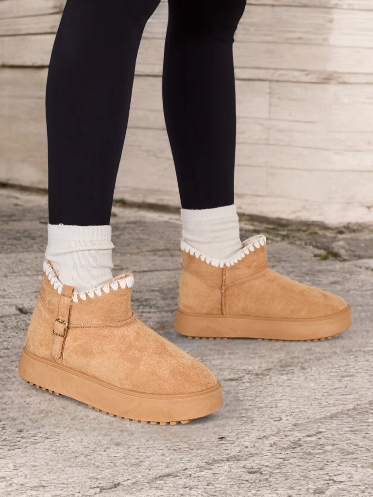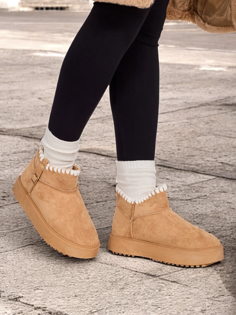 - Superbes bottes de neige à plateforme pour femmes en hiver. La tige est en cuir écologique semblable au daim, doublée de fourrure. Parfaites pour l'hiver!