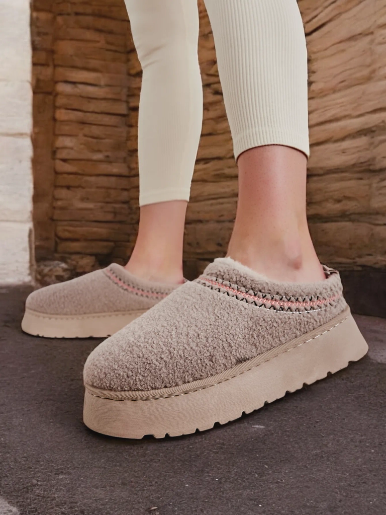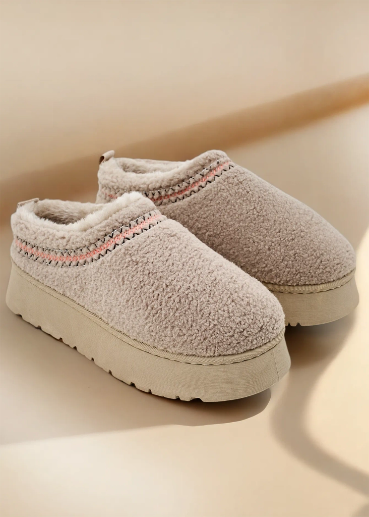 - Superbes bottes de neige d'hiver pour femmes sur une plateforme. La partie supérieure est faite d'un tissu imitation fourrure, l'intérieur est doublé de fourrure. Base parfaite pour l'hiver!