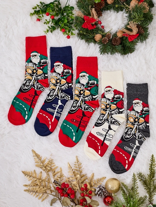 - Chaussettes originales pour hommes fabriquées en tissu de coton flexible avec un motif de Noël. Chaudes et confortables - c'est une excellente idée cadeau!