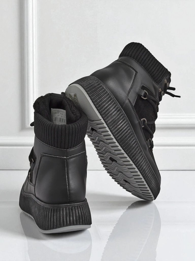 - Bottes de neige intemporelles pour femmes avec une semelle épaisse. Dessus en éco-cuir. À l'intérieur, doublé de fourrure, chaussures à lacets. Parfaites pour les saisons plus froides !