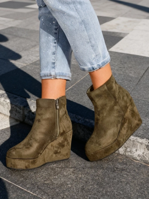 - Élégantes bottes compensées pour femmes, fabriquées en éco-daim. Les chaussures sont doublées à l'intérieur de fourrure. Choix parfait pour l'automne!
