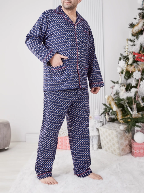 - Pyjama homme avec un imprimé tendance, fabriqué en matière coton. Le modèle est doté de manches longues et d'un pantalon. Haut fermé avec des boutons. Confort et élégance en un seul!