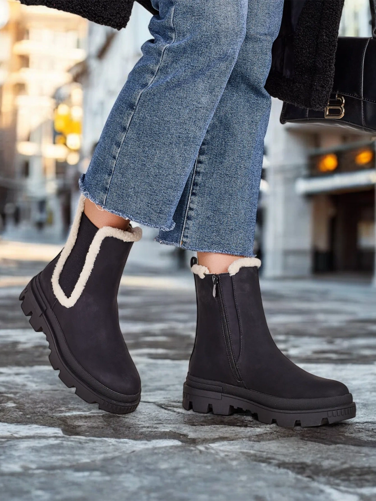 - Bottes pour femmes super stylées avec une doublure en fourrure décorative. Fabriquées en eco cuir mat. La semelle plus épaisse apporte du confort à chaque pas. Excellent choix pour l'automne !