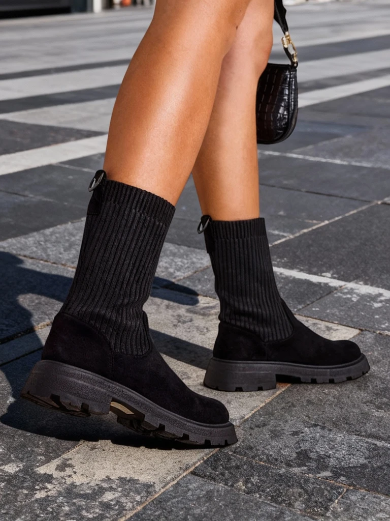 • Superbes bottines plates à enfiler pour femmes fabriquées en simili cuir suédé et en tissu. L'intérieur en tissu assure confort et chaleur même par temps plus froid. Les inserts élastiques sur les côtés offrent un ajustement parfait !