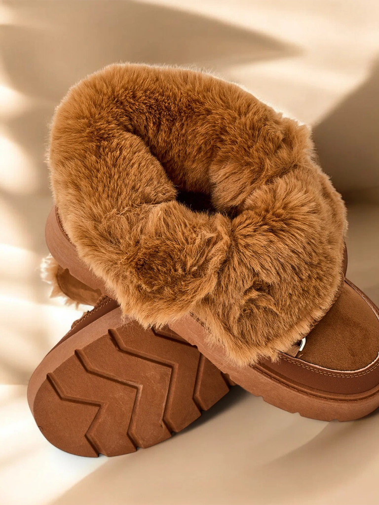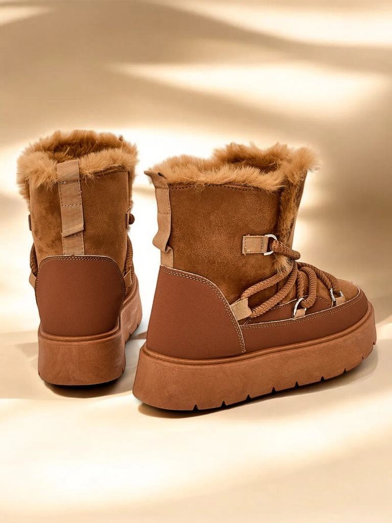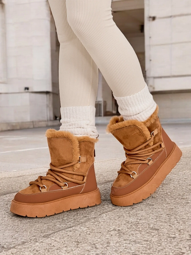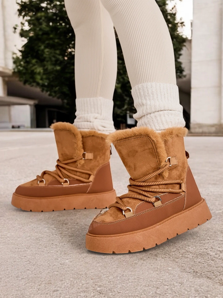 - Bottes de neige pour femmes avec une tige en cuir éco daim. Doublées d'une fourrure douillette à l'intérieur, chaussures à lacets. Parfaites pour l'hiver!