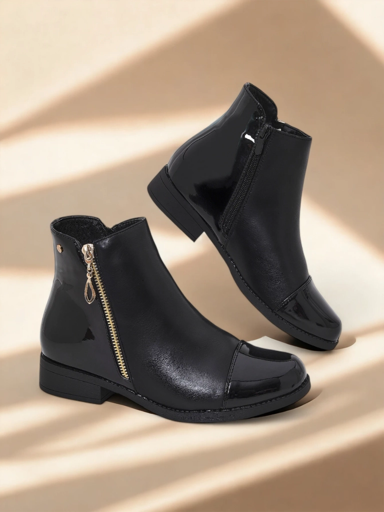 - Superbes bottes plates pour femme en simili cuir écologique. L'intérieur est doublé d'une fourrure délicate. Le modèle se ferme avec une fermeture à glissière. Parfait pour les tenues d'automne!