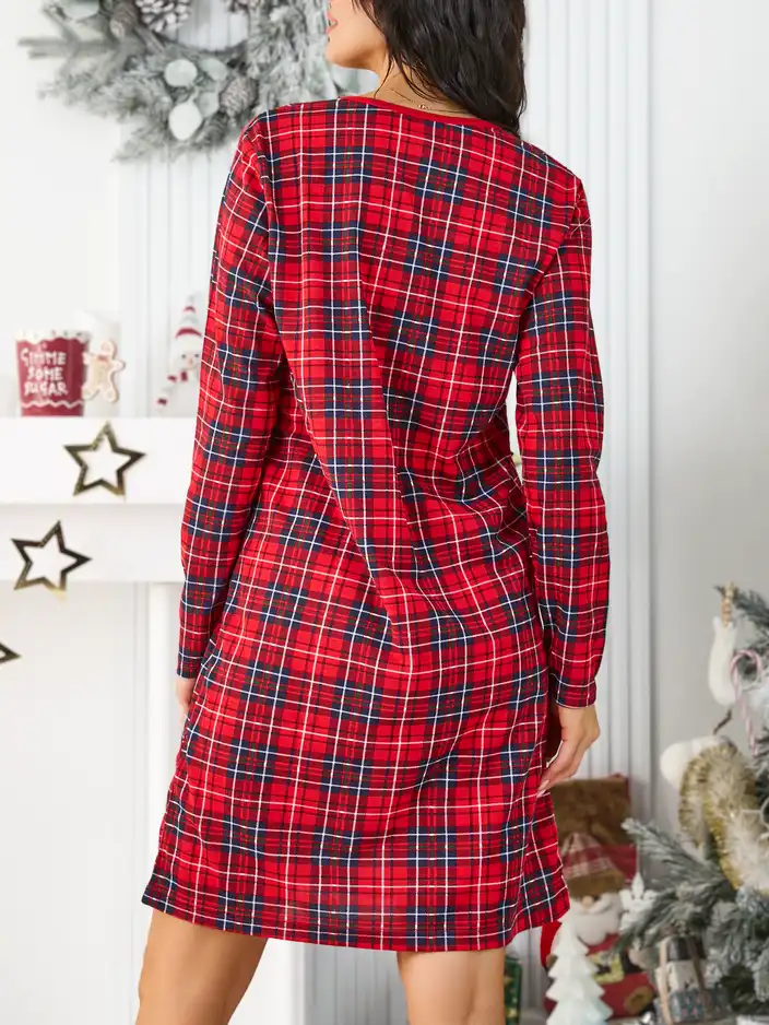 - Chemise de nuit pour femmes. Un modèle légèrement évasé. Il a un col rond et des manches longues. Il est décoré d'un imprimé à carreaux. ATTENTION: Précision de mesure (+/-) 1 cm.