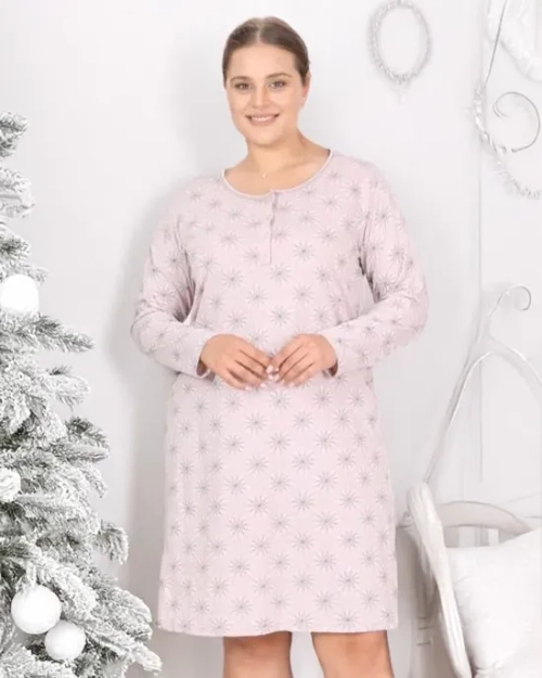 - Chemise de nuit pour femmes en coton doux à 100%. Le modèle est boutonné, avec une coupe légèrement évasée. Il a un col rond et des manches longues. ATTENTION: Précision des mesures (+/-) 1 cm.