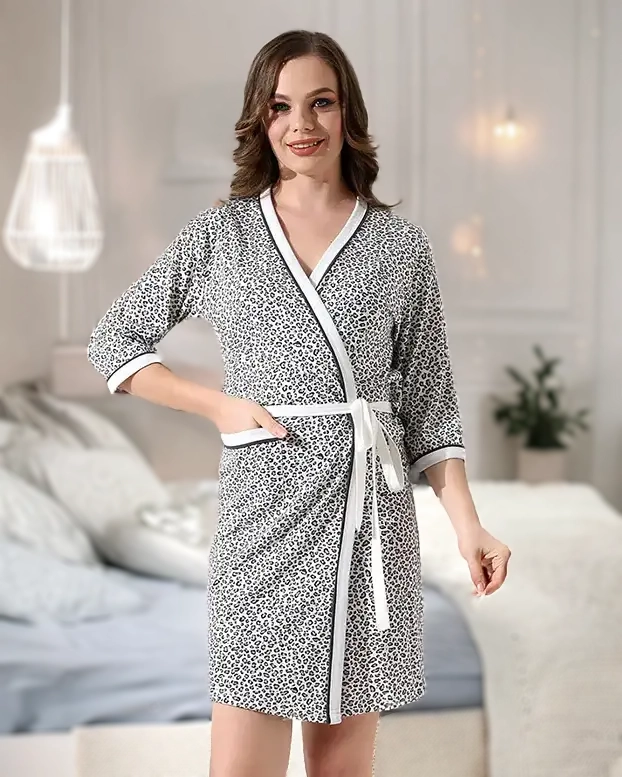 Peignoir en coton pour femme de Royalfashion à motif de panthère