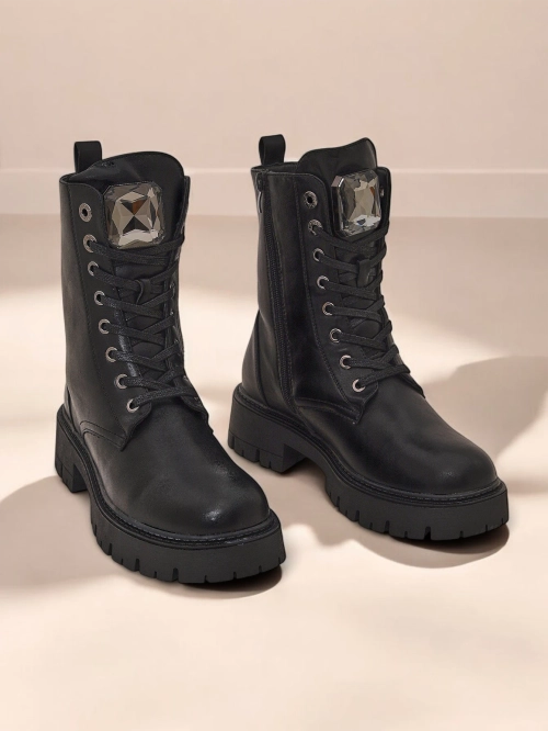 - Les bottines pour femmes de type travailleur sont des chaussures uniques alliant style et confort. Chaussures fabriquées en cuir écologique et semelle en tissu. Modèle lacé et fermé avec une fermeture éclair.