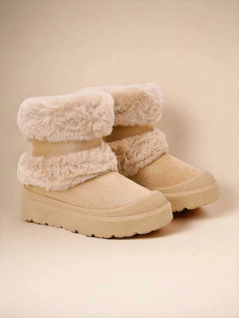 - Bottes de neige pour femmes avec une tige en combinaison de similicuir en daim et tissu agréable. Intérieur douillet en fourrure. Parfaites pour l'hiver !