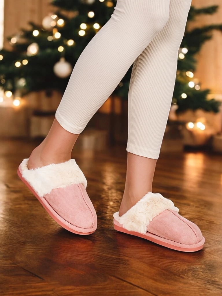 - Chaussons charmants pour femmes en cuir éco daim. Les chaussures pour femmes ont une semelle intérieure douce et chaude. Ils seront parfaits pour les moments d'hiver passés à la maison.