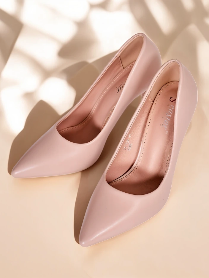- Élégantes pompes à talons aiguilles pour femmes en cuir écologique. L'intérieur de la chaussure est doublé de cuir écologique, et la pointe est effilée. Classe et élégance de mode !