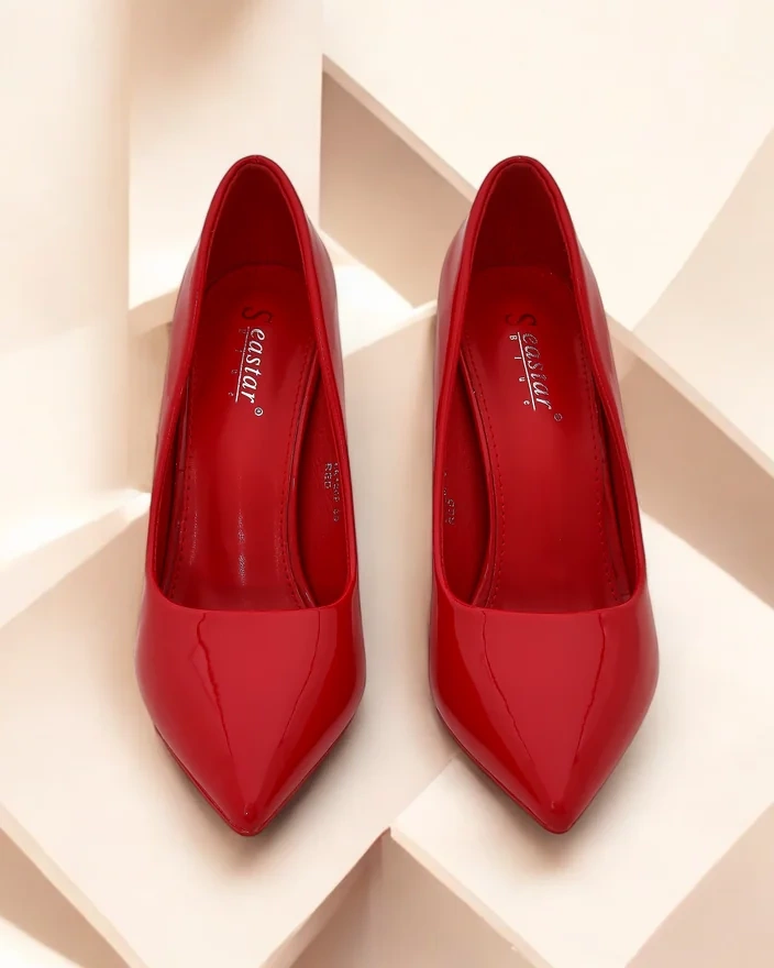 - Élégants talons aiguilles pour femmes. Le modèle est fabriqué en cuir éco-laqué et dispose d'une semelle intérieure en cuir éco. Bout pointu. Parfait pour les sorties du soir !