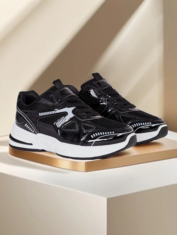 - Chaussures de sport pour femmes dans un style baskets avec une semelle plate. Fabriquées en simili cuir verni avec des inserts en tissu. Semelle intérieure en tissu. Un excellent complément à vos tenues décontractées de tous les jours !