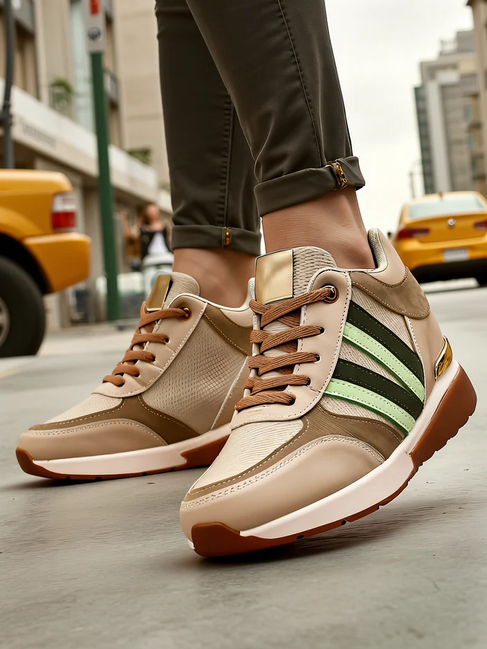 - Wygodne damskie buty sportowe z ukrytym koturnem, wykonane z eko skóry. Model zawiązywany na sznurówki, wkładka tkaninowa. Elastyczna cholewka z lekkością dopasuje się do stopy. Super stylowy dodatek!