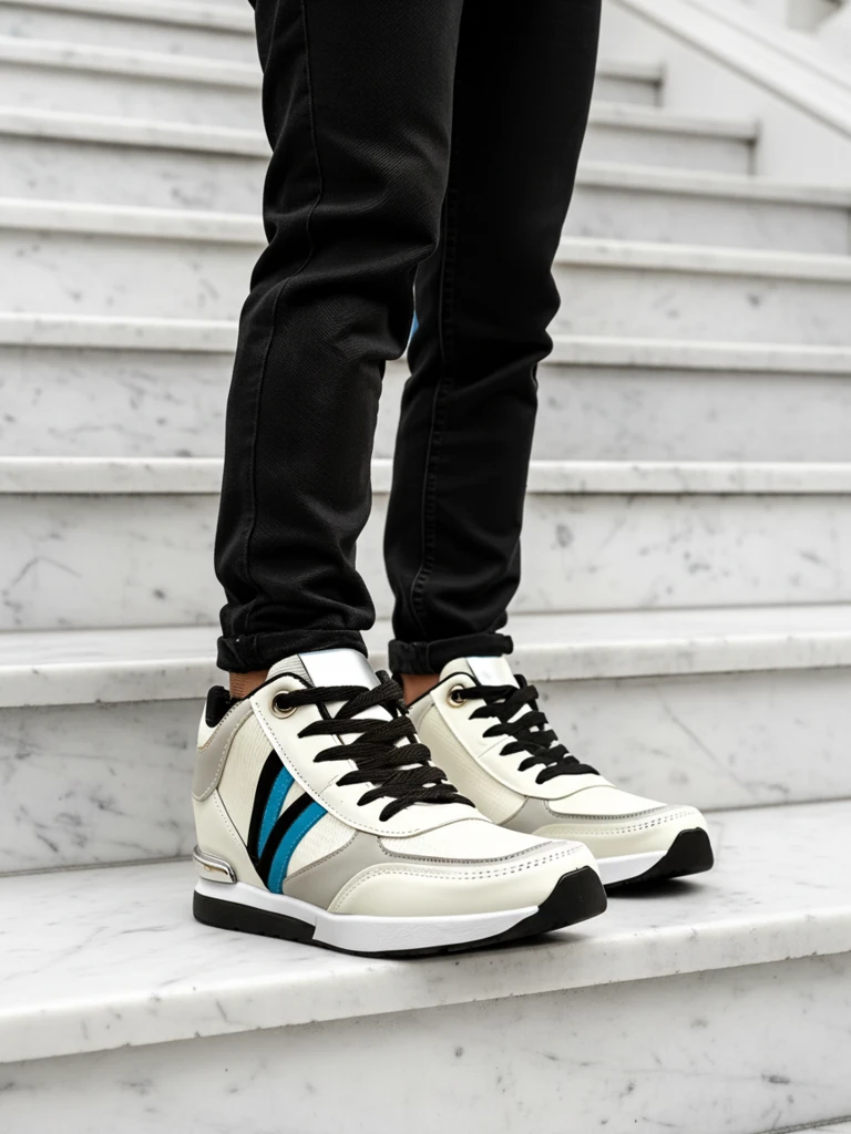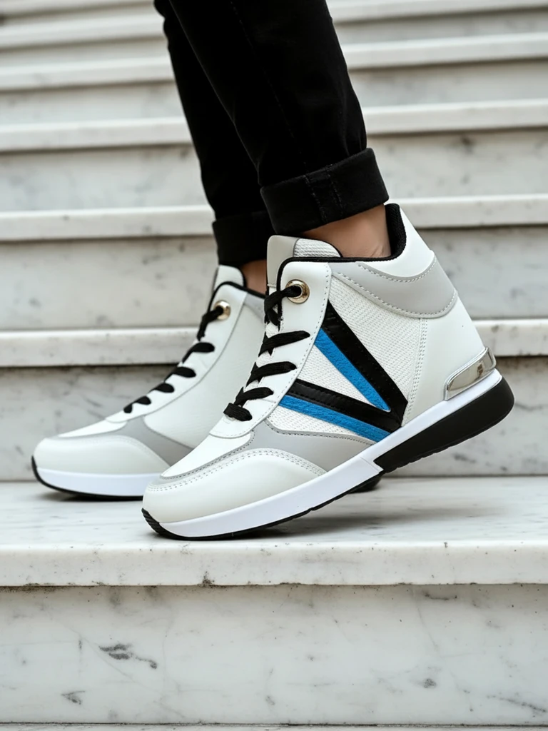 - Chaussures de sport confortables pour femmes avec talon compensé caché, fabriquées en cuir écologique. Modèle à lacets, semelle intérieure en tissu. La tige élastique s'adapte facilement au pied. Un accessoire super stylé !