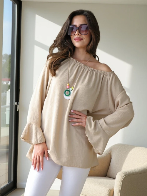 - Une blouse pour femmes exceptionnelle au style espagnol, fabriquée en matériau doux et agréable. Elle présente un col rond élastique et des manches ornées de volants. De plus, un collier est inclus dans l'ensemble. Parfaite pour une tenue quotidienne ains