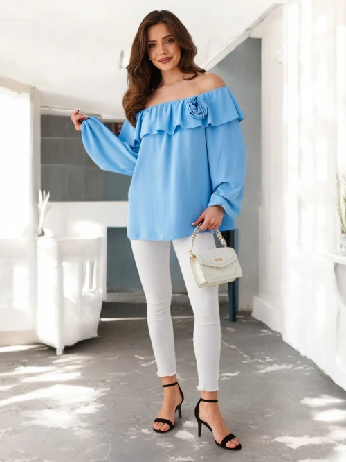 Royalfashion Haut féminin dénudé épaules avec volant et fleur