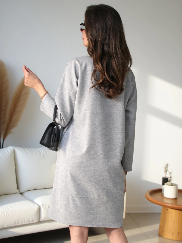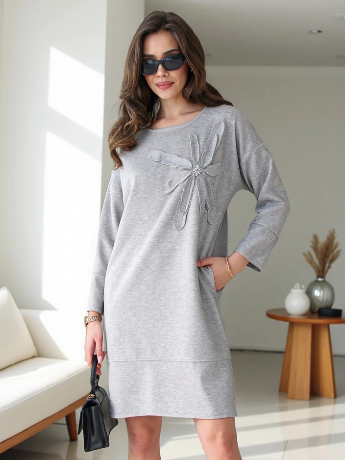 - Robe décontractée femme longueur genou avec des manches 3/4 et un col rond. Le modèle est orné d'une fleur décorative. Un indispensable cette saison ! REMARQUE : Précision des mesures (+/-) 1 cm. Dimensions mesurées à plat.