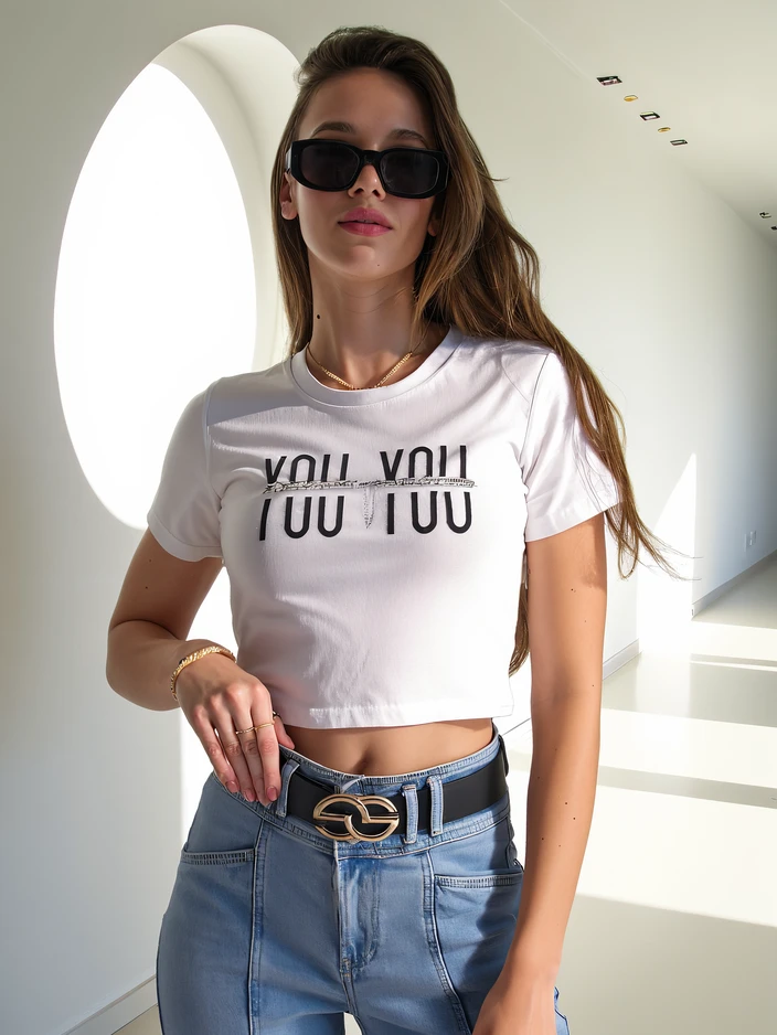 Royalfashion Haut court en coton pour femmes avec l'inscription