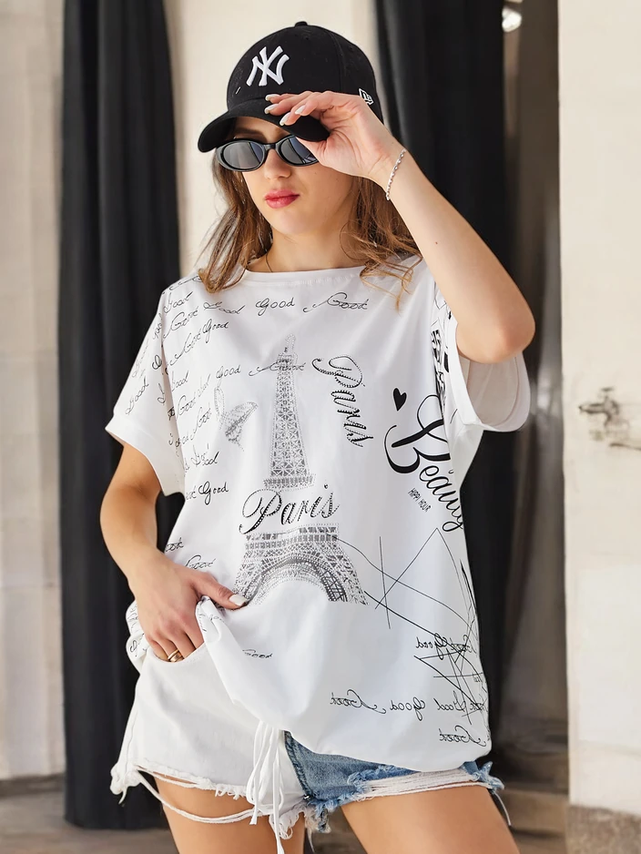 Royalfashion T-shirt en coton pour femmes Good Paris