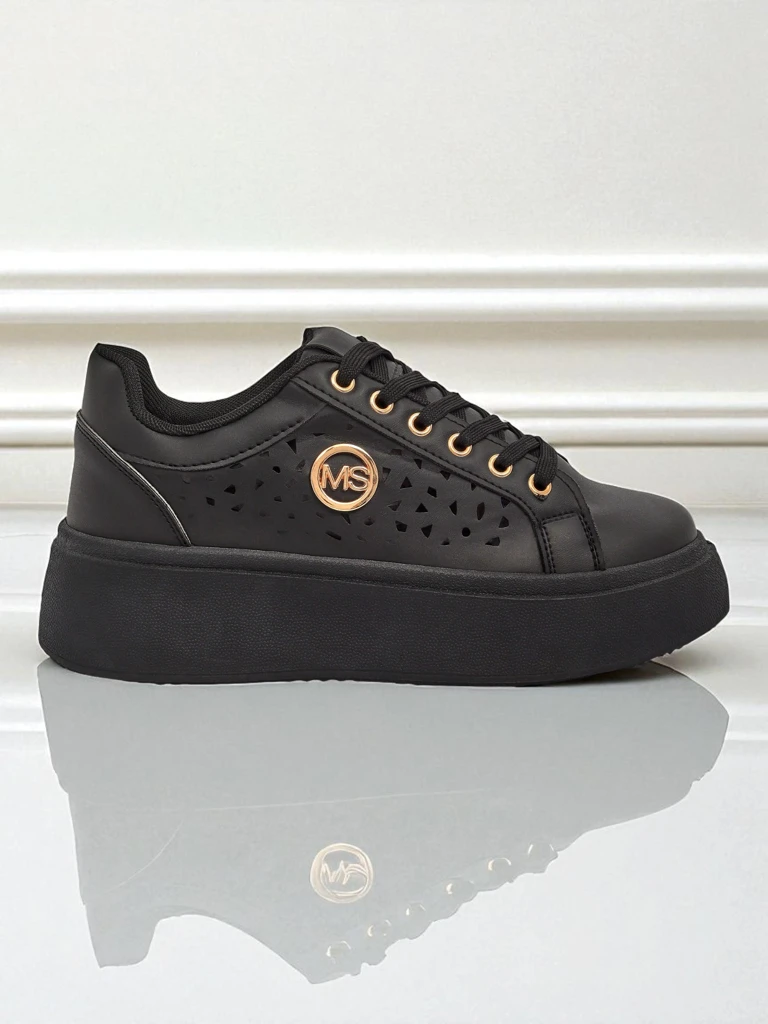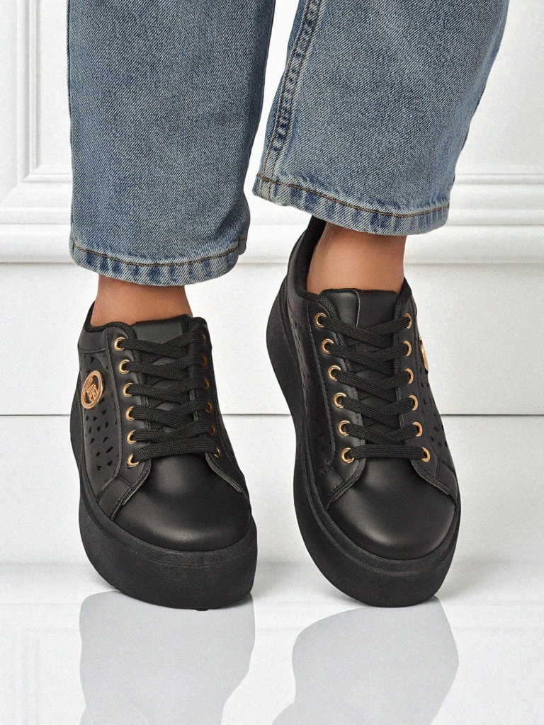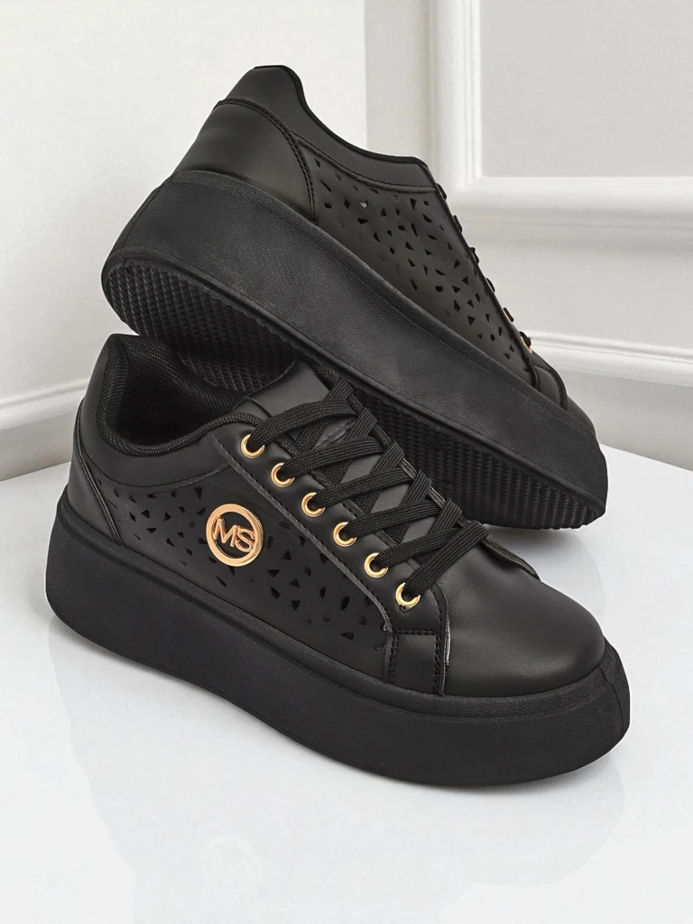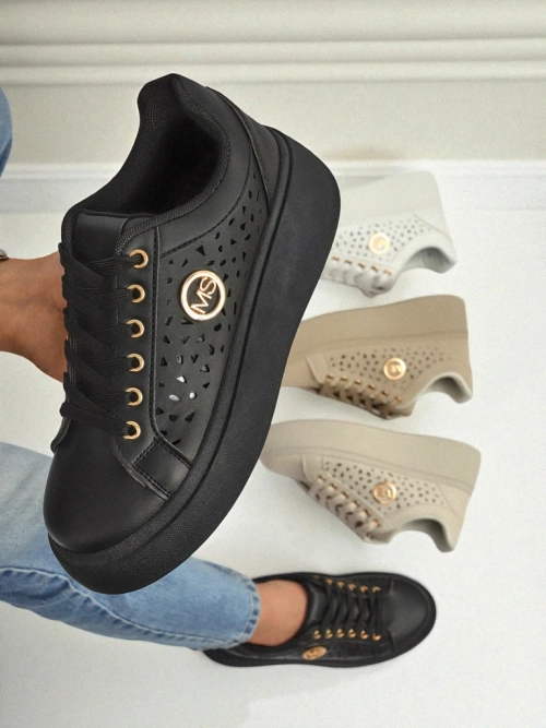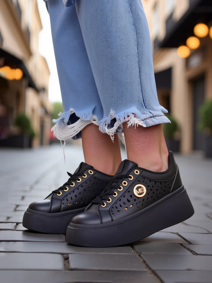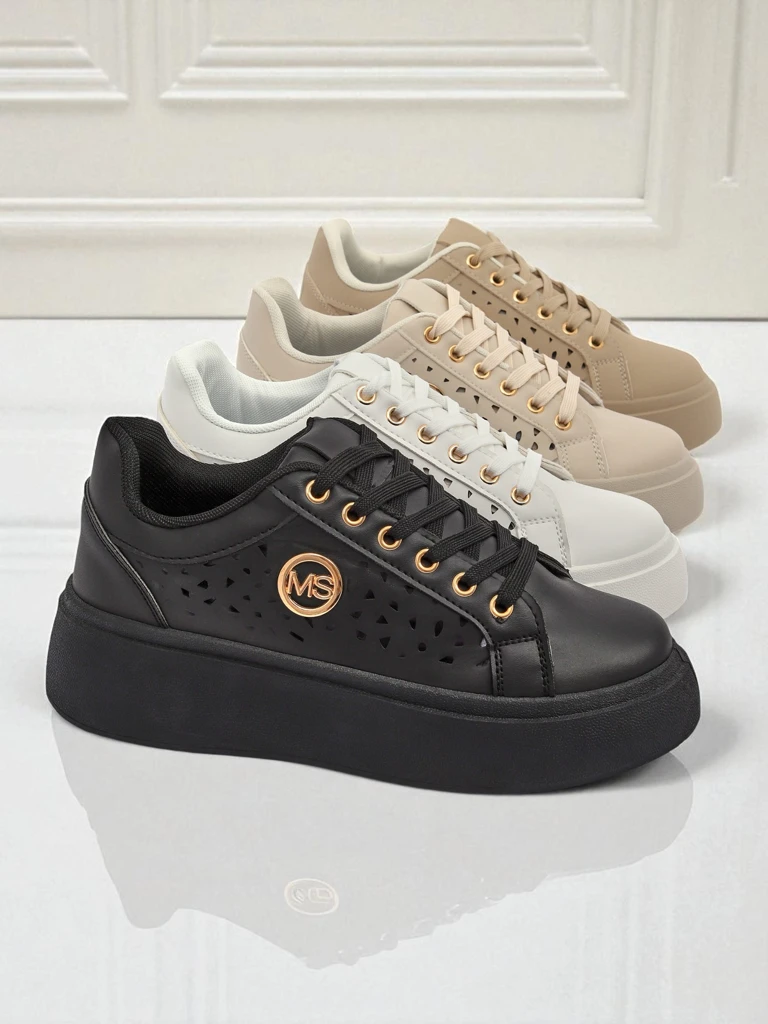 • Sneakers ajourées pour femmes en cuir écologique et semelle intérieure en tissu sur une plateforme, alliant confort et style tendance. Idéales au quotidien, elles offrent légèreté et confort, tandis que leur design subtil ajoute de l'élégance à chaque ten