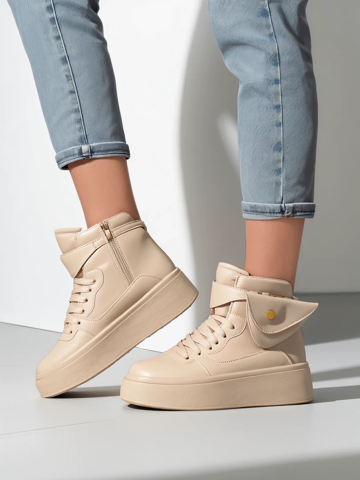• Chaussures de sport pour femmes entièrement en cuir synthétique. Modèle plateforme. Tige lacée. Elles s'accorderont parfaitement avec vos tenues de tous les jours !