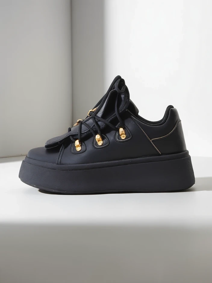 • Baskets sportives pour femmes sur une semelle plus épaisse. Dessus lacé en cuir écologique. L'intérieur est en tissu confortable. Le modèle présente une languette décorative. Parfait pour un usage quotidien !