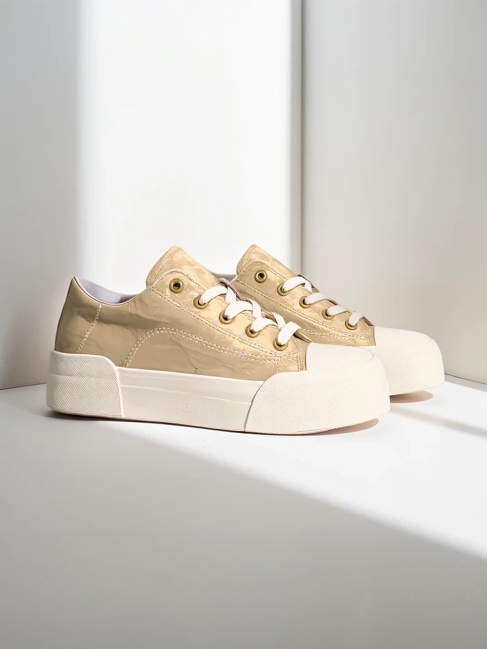 - Baskets sportives élégantes pour femmes en éco-cuir. Modèle sur une plateforme confortable. Le dessus est lacé. Parfaites pour créer des looks décontractés !