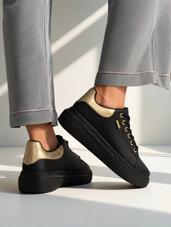 Sneakersy Callista od Royalfashion to wyjątkowa propozycja dla kobiet ceniących wygodę i subtelny styl. Wykonane z wysokogatunkowej skóry ekologicznej, cechują się estetycznym wykończeniem i trwałością. Dzięki procesowi produkcji opartemu na rygorystycznej kontroli jakości i przyjaznym środowisku technologiom, te buty nie tylko prezentują się doskonale, ale również posłużą przez wiele sezonów. Przewiewna, tekstylna wkładka oraz zewnętrzna tkanina zapewniają uczucie świeżości i komfort przez cały dzień.Cechą wyróżniającą model Callista jest solidna, płaska podeszwa o wysokości 4,5 cm, która gwarantuje stabilność oraz wysoki komfort noszenia, nawet przy dłuższych spacerach czy aktywnym dniu. Nosek typu okrągłego oraz klasyczne sznurowanie sprawiają, że sneakersy dobrze układają się na stopie, dopasowując się do jej kształtu. Brak wzoru i jednolita, czarna kolorystyka z kontrastującym zapiętkiem to idealna baza do wielu stylizacji.Buty świetnie wpisują się w obecne trendy – minimalistyczny design, wysoka podeszwa oraz uniwersalność sprawiają, że to must-have na wiosnę, lato i jesień. Stylistycznie możesz je łączyć na różne sposoby:1. Casualowy look – połącz sneakersy z jasnymi jeansami rurkami i prostym T-shirtem, uzyskując wygodny zestaw na co dzień.2. Streetwear – zestaw z krótką sukienką lub spódnicą midi oraz oversize’ową marynarką, podkreślając miejski szyk.3. Sportowa elegancja – załóż do legginsów oraz bluzy z kapturem, idealnie sprawdzą się podczas weekendowych spacerów lub zakupów.Pielęgnacja sneakerów Callista jest bardzo prosta – wystarczy czyścić je wilgotną ściereczką z dodatkiem delikatnego detergentu i suszyć z dala od źródeł ciepła. Zalecane jest także stosowanie środków do pielęgnacji skóry ekologicznej, by zachować ich świeżość oraz elastyczność materiału.Model ten wpisuje się w aktualne tendencje mody miejskiej, gdzie królują wygodne, wyraziste buty na platformie, które skutecznie podkreślają indywidualny styl i dodają pewności siebie każdej stylizacji. Sneakersy Callista Royalfashion to doskonały wybór dla kobiet aktywnych i ceniących nowoczesną klasykę.
