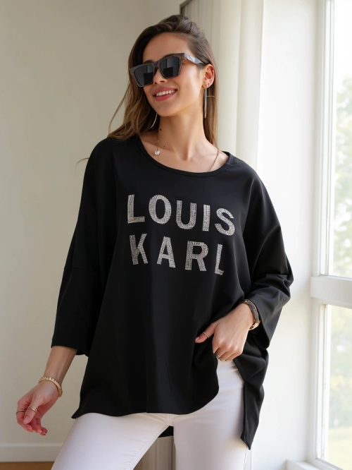 - Blouse originale pour femmes à encolure ronde, fabriquée en tissu doux et agréable au toucher. L'ensemble est orné d'une subtile inscription en strass, et les manches longues ajoutent de la légèreté. Un choix parfait pour créer des tenues à la mode et élé