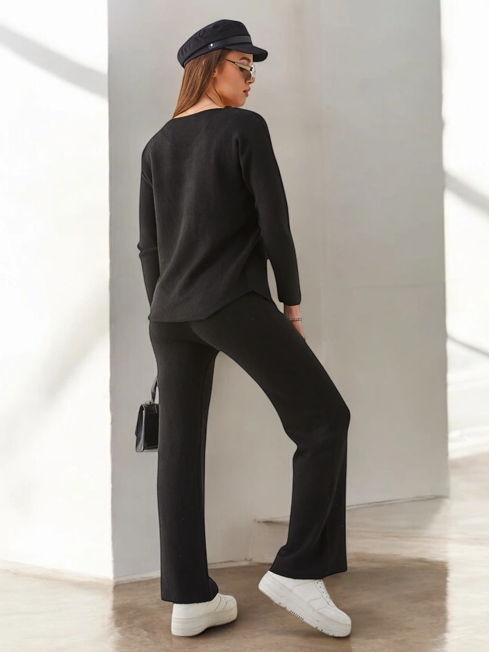 - Ensemble de pull pour femmes en tissu agréable. Pull avec un col en V, a des manches longues. Les pantalons larges ont une taille élastique. Un incontournable de cette saison ! REMARQUE : Précision des mesures (+/-) 1 cm.