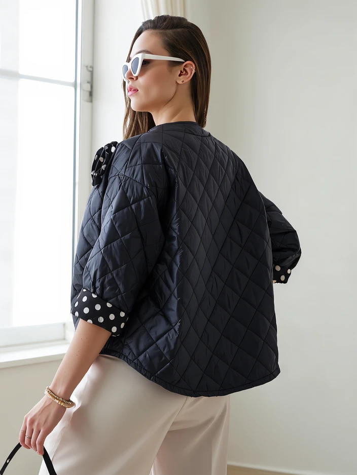 Veste de transition printanière pour femmes Royalfashion avec une doublure à fleurs et à pois