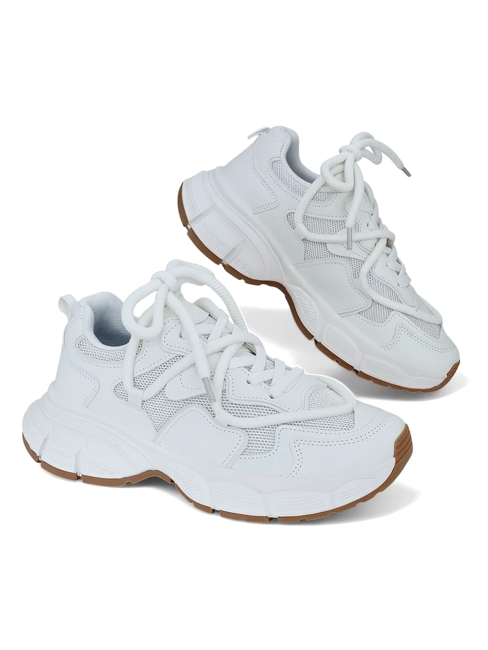 - Chaussures de sport pour femmes en éco-cuir et mesh. Modèle sur une semelle plus épaisse. Tige à lacets. Elles s'intégreront parfaitement dans vos tenues quotidiennes !