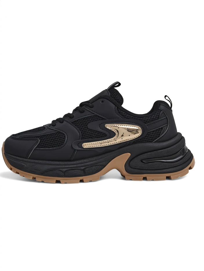 - Chaussures de sport pour femmes en cuir écologique et en mesh. Modèle avec une semelle plus épaisse. Tige lacée. Elles seront parfaites pour des tenues de tous les jours !