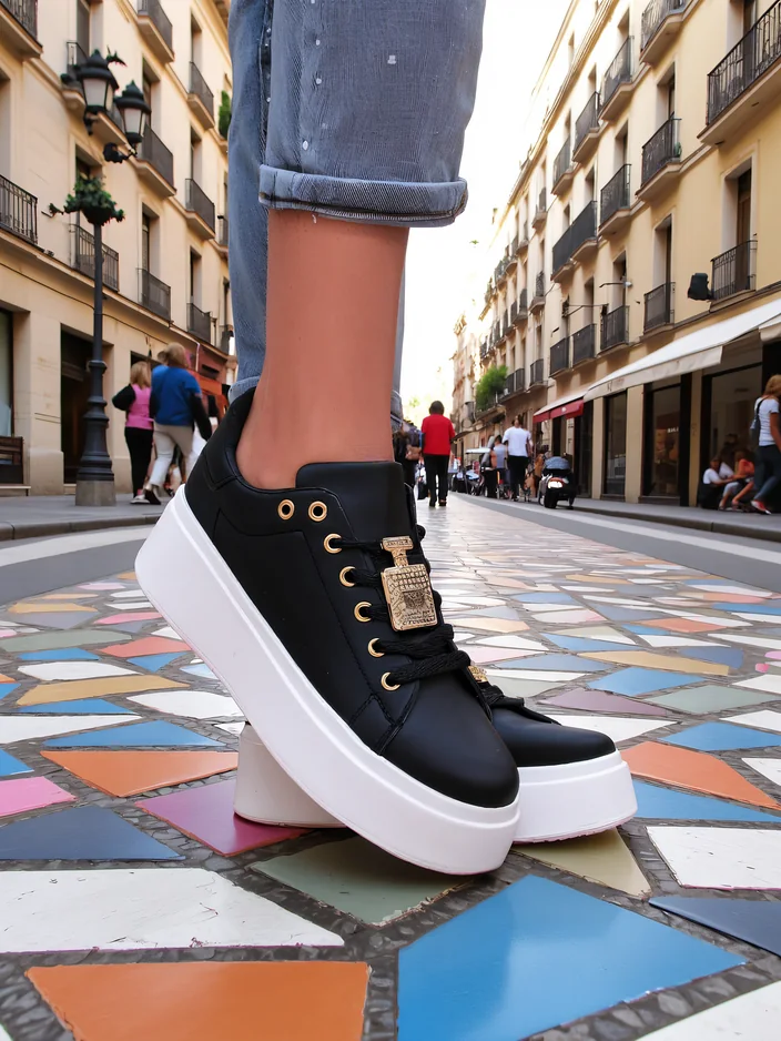 - Baskets à semelle plate pour femmes - une combinaison parfaite de style et de confort. Chaussures en cuir écologique. Modèle lacé avec une semelle intérieure en tissu. Idéal pour les personnes actives !