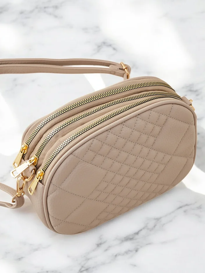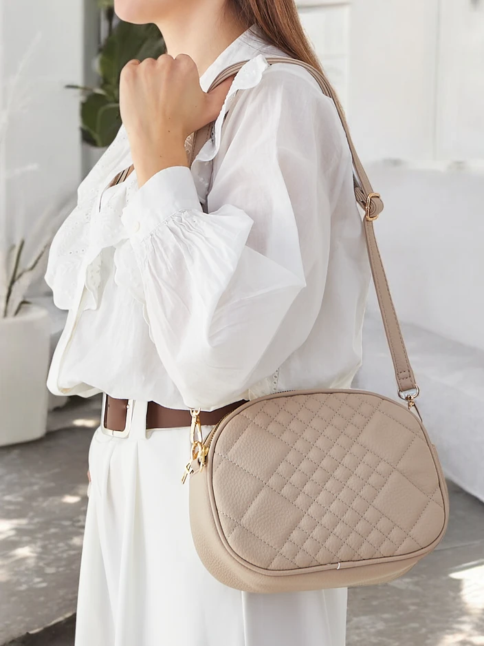 - Sac à main ovale pour femmes avec fermeture éclair, en éco-cuir. Le modèle possède 3 compartiments et une poche extérieure. De plus, il est livré avec une bandoulière amovible et réglable. Parfait pour un usage quotidien !