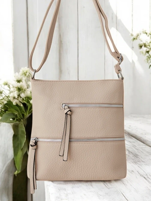 - Sac à main pour femmes, zippé, en cuir écologique. Le modèle a 1 compartiment, 3 poches internes et 2 poches externes. De plus, une bandoulière réglable. Parfait pour un usage quotidien !