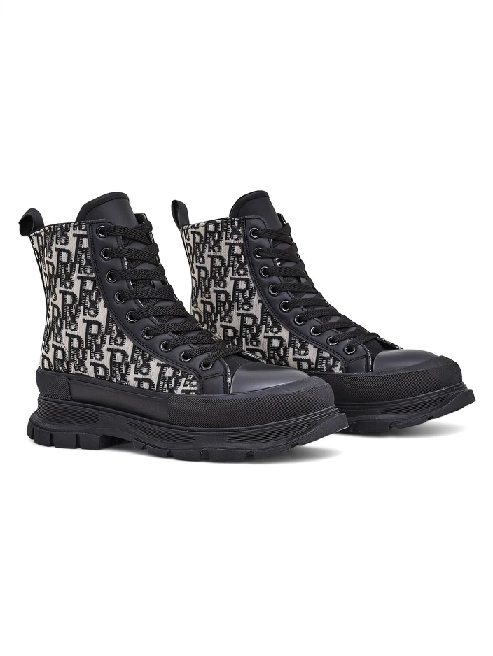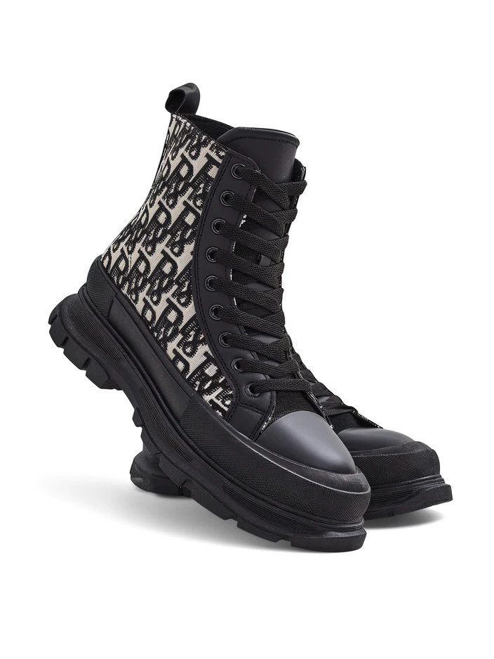 - Magnifiques bottes de cheville pour femmes à talon plat, en éco-cuir et en tissu imprimé. L'intérieur est doublé de tissu. Modèle lacé.