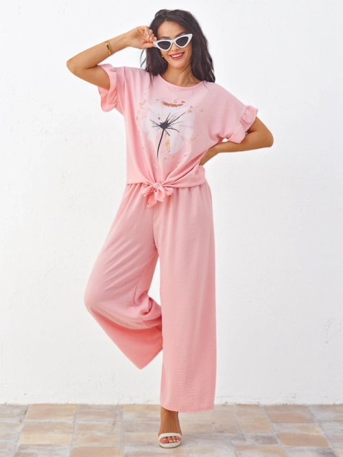 Ensemble décontracté Royalfashion pour femmes avec un haut à manches courtes et un pantalon large