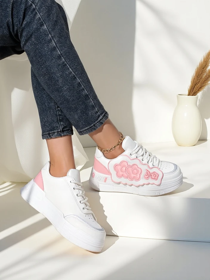- Baskets pour femmes en éco-cuir avec semelle en tissu sur une plateforme, alliant confort et mode élégante. Parfaites pour un usage quotidien, elles offrent légèreté et confort, tandis que le design subtil ajoute une touche d'élégance à n'importe quelle t