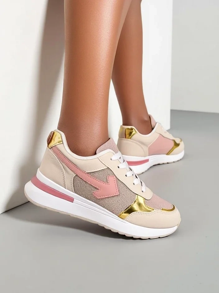 - Chaussures de sportStylées pour femmes - un choix idéal pour un usage quotidien ! La tige est en combinaison de cuir écologique et de tissu pailleté, avec une semelle intérieure en tissu. Ces chaussures
