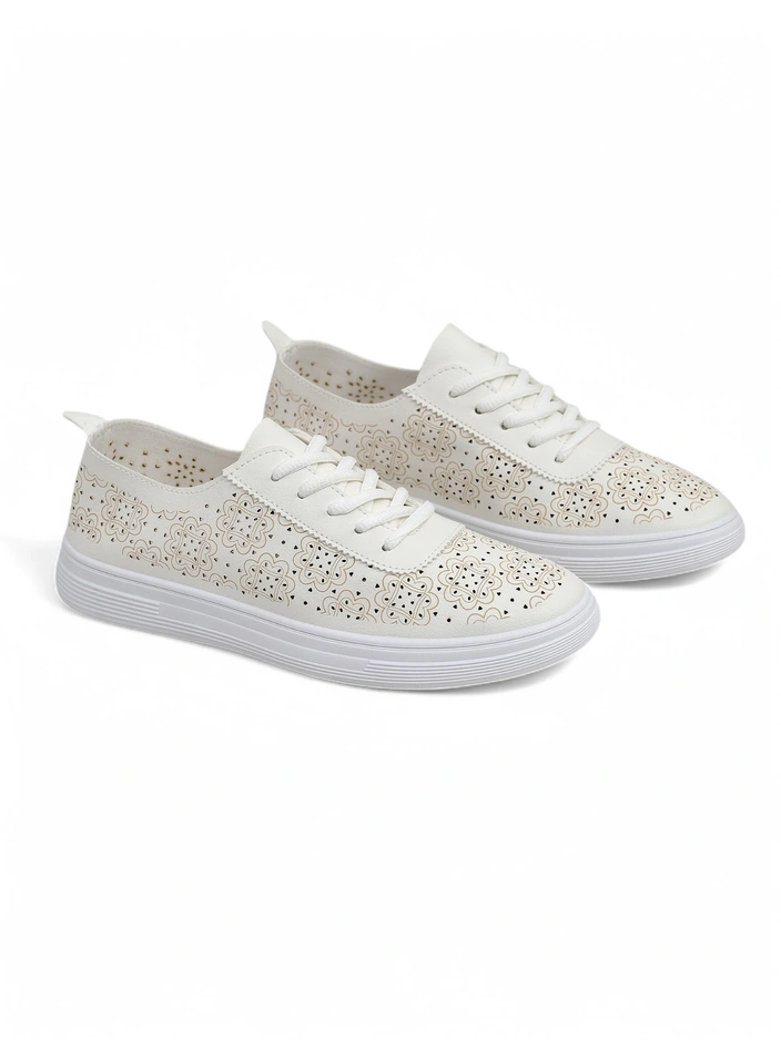 - Chaussures sportives originales à lacets pour femmes avec un imprimé sur une semelle plate - une combinaison parfaite de style et de confort. La chaussure est fabriquée en éco-cuir. Modèle à lacets, avec une semelle intérieure en tissu. Idéal pour les per