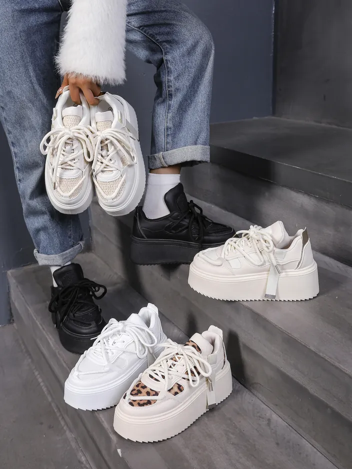 - Baskets à plateforme pour femmes - la combinaison parfaite de style et de confort. Chaussures en éco-cuir. Modèle lacé avec une semelle intérieure en tissu. Idéal pour les personnes actives !