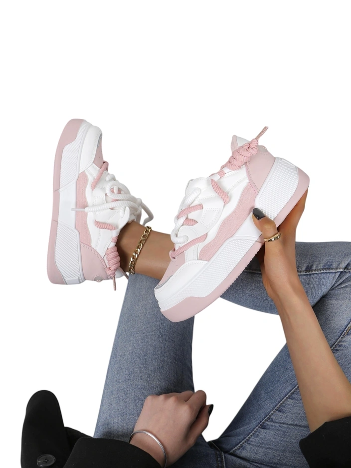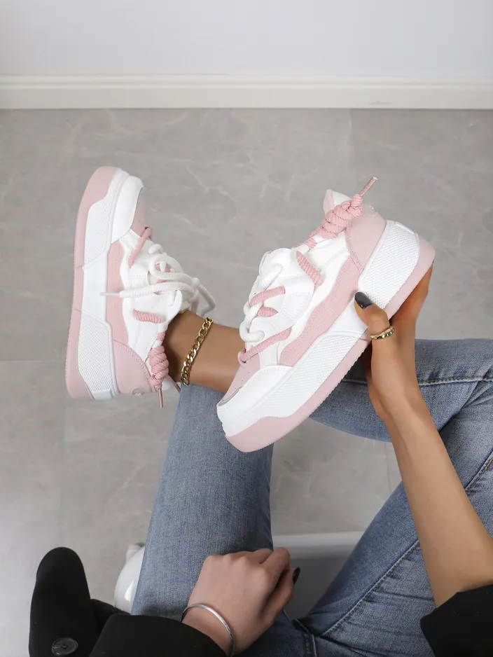 - Baskets Femmes avec une semelle plus épaisse - la combinaison parfaite de style et de confort. Chaussures en éco-cuir. Modèle à lacets avec une semelle intérieure en tissu. Idéal pour les personnes actives !