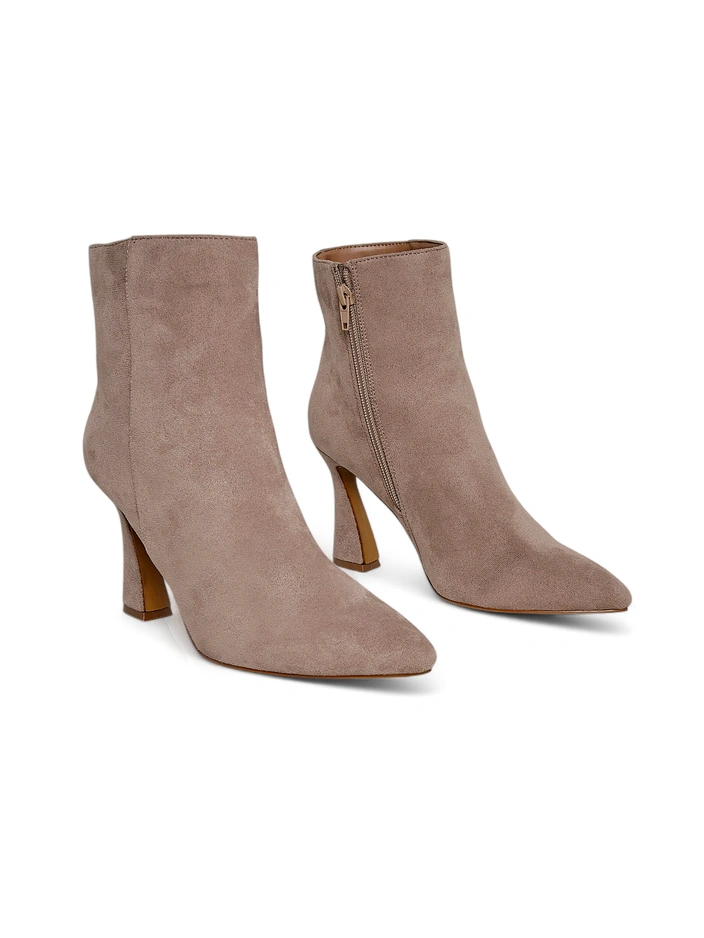 - Bottines élégantes en éco-suède pour femmes - la solution parfaite pour les jours plus frais. Le modèle est doté d'une fermeture éclair et d'une semelle intérieure en éco-cuir. Le modèle a un talon aigu et un bout pointu.